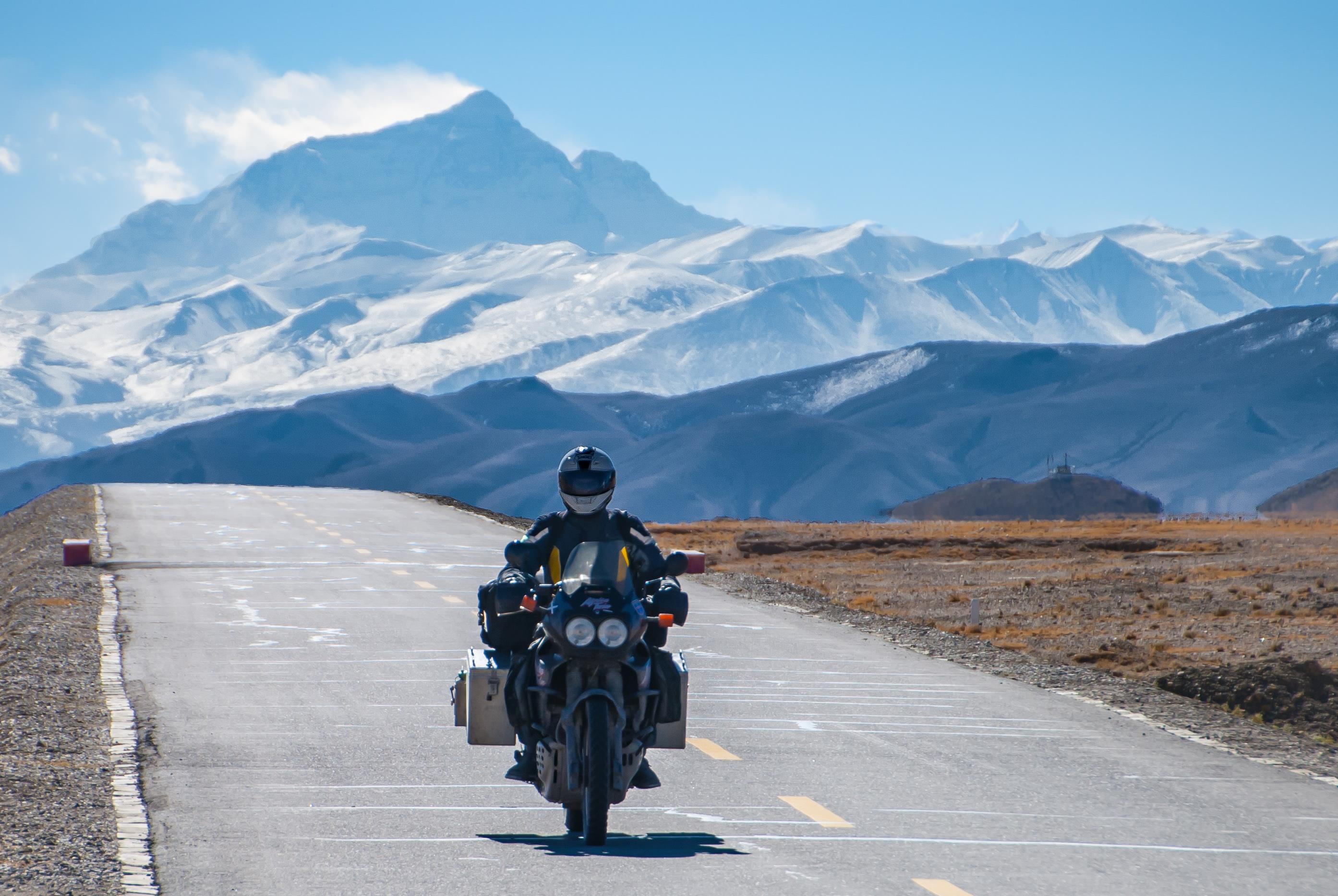 Die Route führte durch atemberaubende Landschaften, endlose Steppen, pulsierende Städte, über einsame Bergpässe und durch das abgeschiedenste Land der Erde, Tibet, bis schließlich zum Mount Everest – immer getragen vom Wunsch nach Freiheit und Abenteuer.