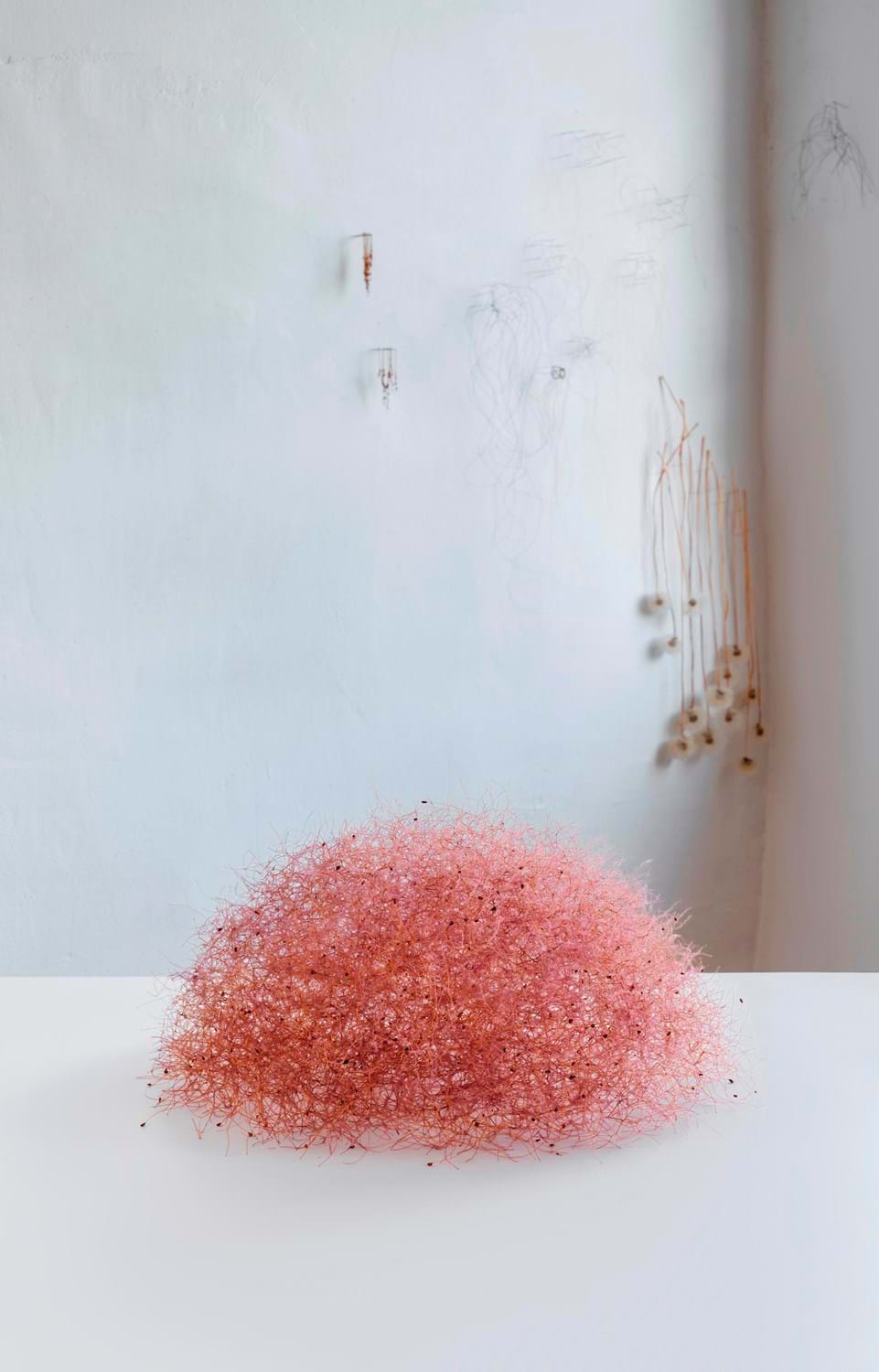 Die 1965 in Wiesbaden geborene Bildhauerin Christiane Löhr, die heute in Köln und im italienischen Prato lebt, schafft einen beeindruckenden skulpturalen und installativen Kosmos. Dafür verwendet sie unterschiedliche Materialien aus der Natur, die sie räumlich und architektonisch in einen neuen Kontext verortet. Organische Elemente wie Flugsamen, Pflanzenstängel, Kletten, Baumblüten oder Pferdehaar nutzt sie als Konstruktionsmaterial für ihr einzigartiges Werk. Alle formgebenden Naturgebilde findet die Bildhauerin eher beiläufig, um sie dann in eine neue Ordnung zu bringen und bewusste Setzung im Raum vorzunehmen.