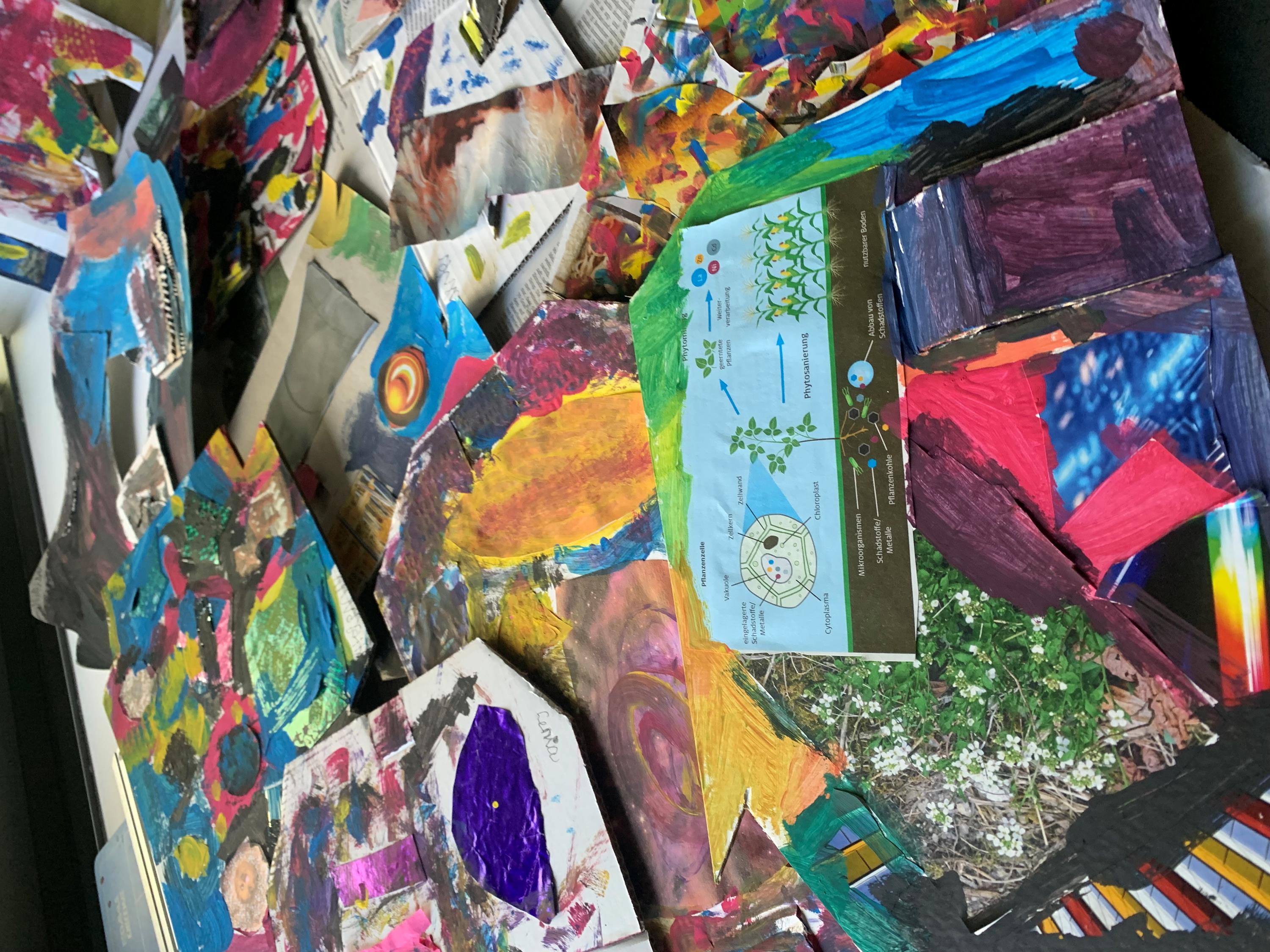 Abbildung: Arbeitsergebnisse aus einem Collageworkshop Emilio Vedova, Foto: Ulrike Rathjen
